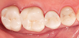 Figure 2: Final situation: Monolithic Life™ Premium Highly Translucent Zirconia 3-unit Bridge at teeth 45-47. Minimum wall thickness of framework at contact points is 0.5mm