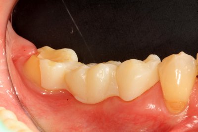 Figure 1: Initial situation: Insufficient provisional at teeth 45-47